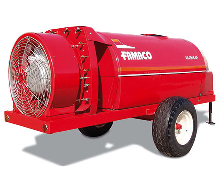 La AR 2005 SP cuenta con una turbina axial de alta eficiencia y tanque de 2.000 litros. Ofrece excelente penetración del aire y una distribución homogénea del producto, ideal para cultivos frutales de gran porte.
